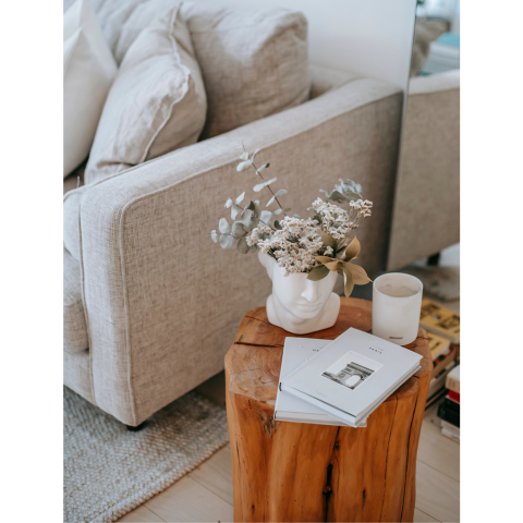 かすみ草やユーカリを小さな花瓶に挿すだけで、空間の印象が変わります。