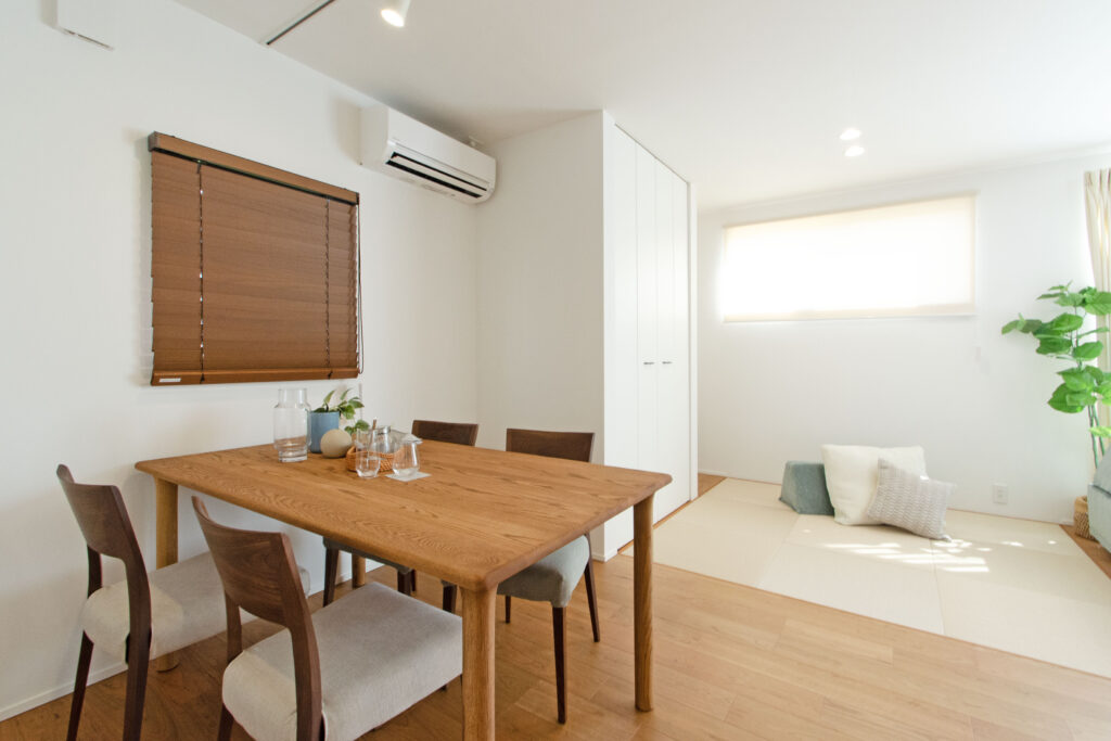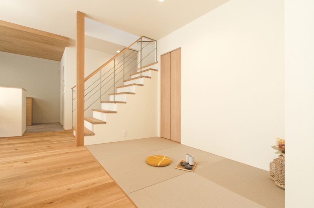 段差をつくらず、フローリングと同じ高さで畳を敷くと、和室らしさが強く出ず、現代的な印象になります。
