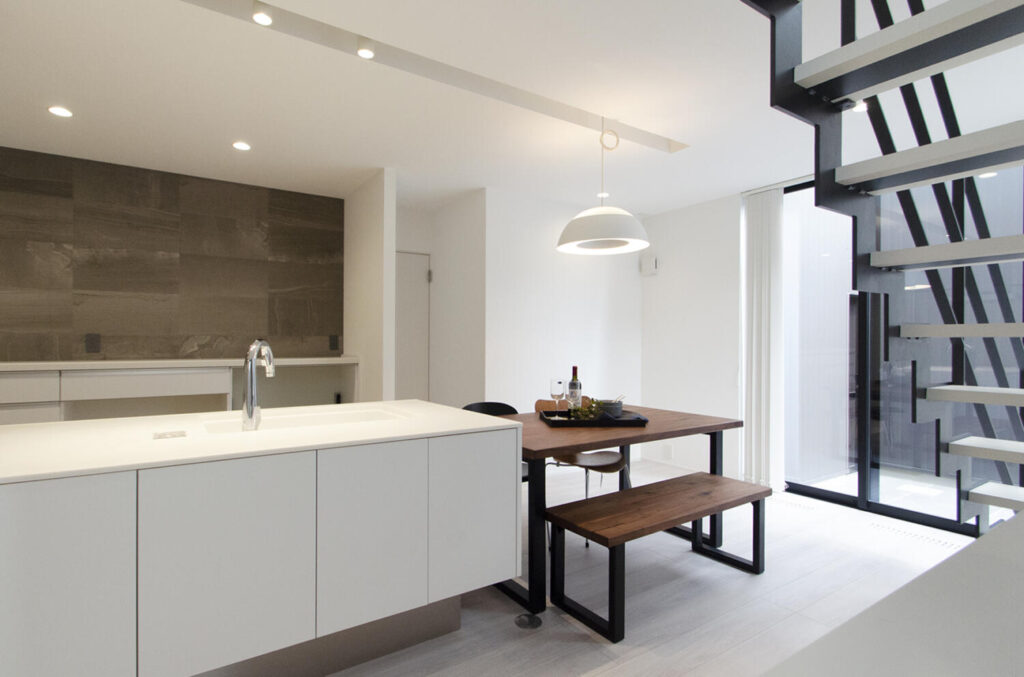 キッチンとダイニングテーブルを横並びに配置する「横並びダイニングキッチン」。