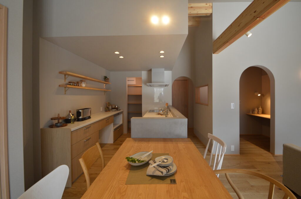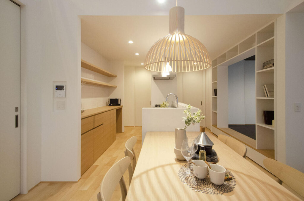 ダイニングとキッチンが一体感を持つことで、