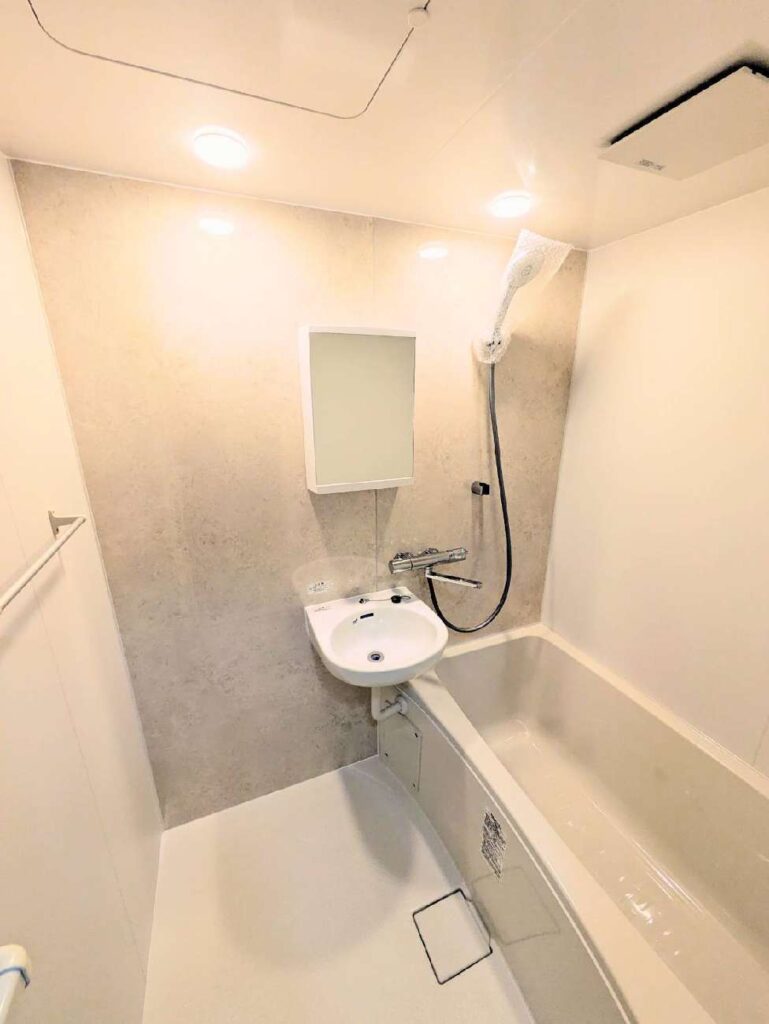 集合住宅用ユニットバス「BLWシリーズ」をご採用。コンパクトな空間でも、カラーコーディネートと設備の工夫で快適さと清潔感を両立しています。空間を広く、快適に感じられる心地よいコンパクトバスルームです。
