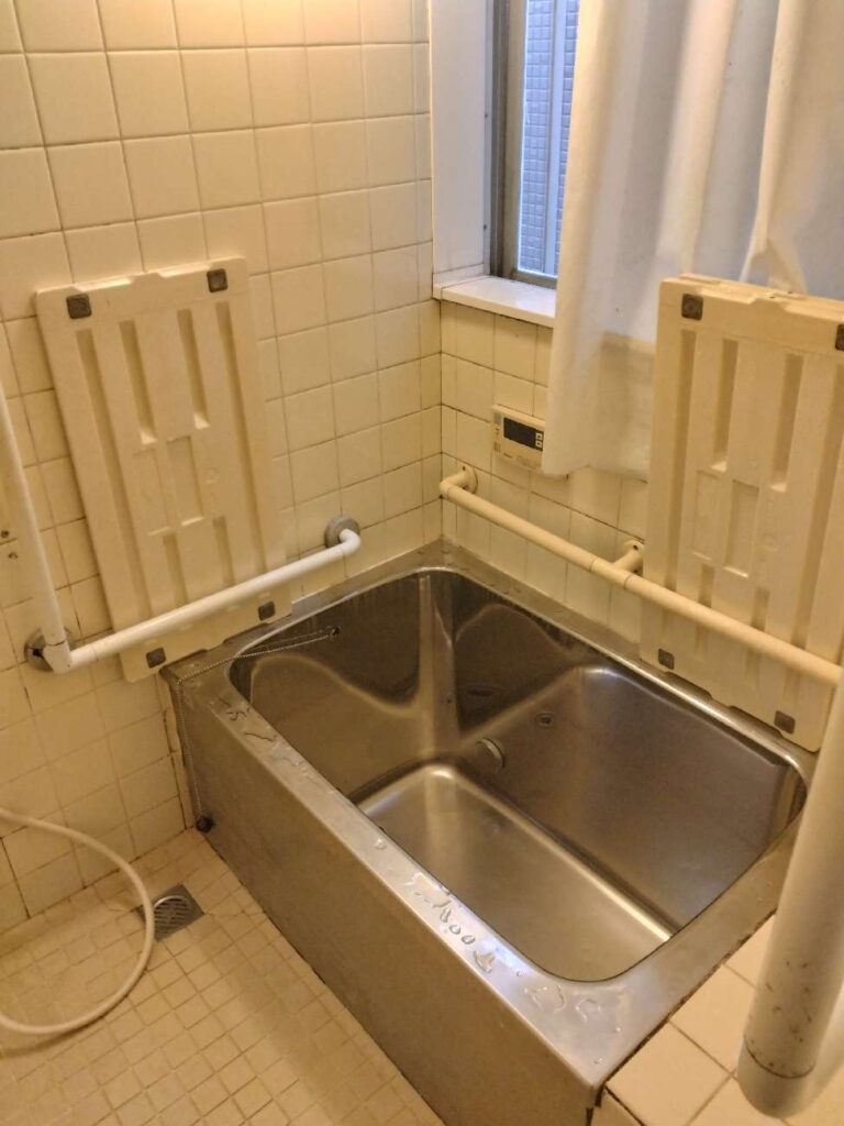 以前はタイル張りの壁と床で冬場に冷え込みやすい仕様でした。タイルの目地は、掃除の 手間がかかる要因となっていました。